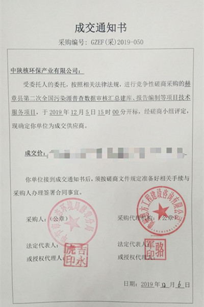 [2019-12-23]环保公司成功中标赫章县第二次全国污染源普查数据审核汇总建库、...12月5日下午,中陕核环保产业有限公司以总分第一名的成绩,成功中标《赫章县第二次全国污染源普查数据审核汇总建库、报告编制等项目技术服务项目》。该项目工作主要为入户...