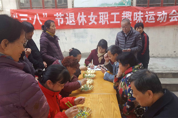 [2019-03-08]离退休分会开展“三八节”主题趣味运动会阳春三月,春意盎然。3月6日下午,离退休分会在职工活动中心开展“三八节”主题趣味运动会。60余名退休、内退女职工欢聚一堂,共庆“三·八”妇女节。本次趣味运动会根据女...