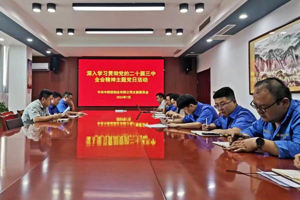 [2024-07-26]中陕核钼业有限公司党支部开展“深入学习贯彻党的二十届三中全会...7月26日,中陕核钼业有限公司党支部开展“深入学习贯彻党的二十届三中全会精神”主题党日活动。钼业公司全体党员参加了活动,部门/车间负责人列席了此次活动。活动由公司副...