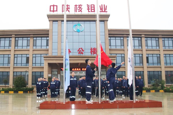 [2023-10-07]中陕核钼业有限公司举行“同升国旗、喜迎国庆”升国旗活动9月28日,为庆祝祖国74周年华诞,中陕核钼业有限公司举行“同升国旗、喜迎国庆”活动,共60余名干部职工参加升旗仪式,以此祝愿祖国繁荣昌盛、国泰民安。上午7时10分,钼业...