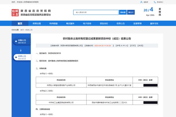 [2023-04-20]喜讯!中陕核工业集团测绘院有限公司成功中标镇安县农村集体土地...4月19日,从陕西省政府采购网获悉,中陕核工业集团测绘院有限公司成功中标镇安县不动产登记中心组织的“农村集体土地所有权登记成果更新项目二标段”。该项目主要工作内容...