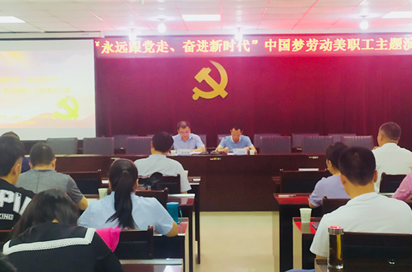 为热烈庆祝中国共产党成立100周年,回顾党的光辉历史,讴歌党的丰功伟绩,铭记党的恩情,激发广大党员干部爱党爱国爱社会主义的热情,6月4日上午,公司党委在六楼会议室举办了“永远跟党走、奋进新时代”中国梦劳动美职工主题演讲比赛。公司两级领导干部、党员职工代表、参赛选手共计60人参加了此次活动?;疃晒镜橙汗ぷ鞑坎砍し叫×鞒?。