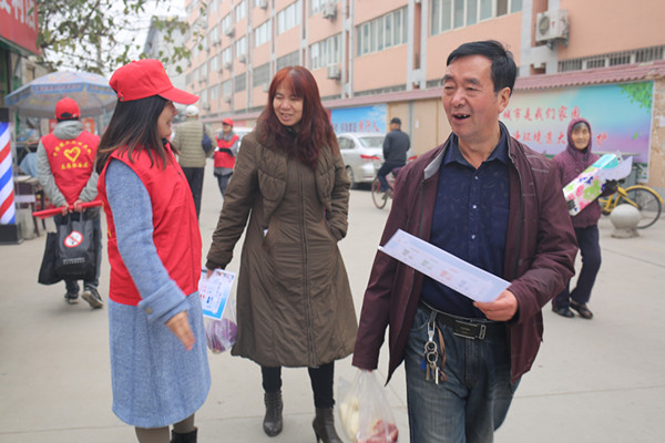 志愿者向小区居民详细介绍了垃圾分类的标志、品种及相关知识,发放了彩页宣传册,捡拾路面及绿化带垃圾,在分类垃圾投放处正确引导居民如何进行分类投放,传播了文明新时尚。